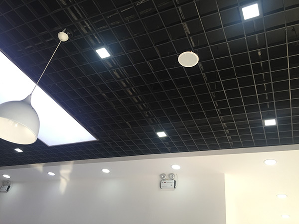 工程主要內容:大廳輕鋼龍骨石膏板吊頂;背景墻細木板打底木紋板面層飾面;地面鋪設瓷磚;體驗區平臺;頂棚燈箱;套裝門及強弱電等項目。